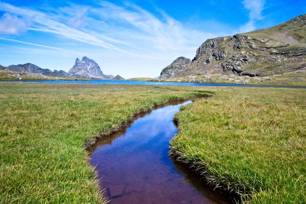 Un pequeño ascenso te presenta una de las vistas más impresionantes de los Pirineos. Los ibones de Anayet, situados a 2.233 metros, junto con los picos circundantes como el Vertice de Anayet y el Midi D’Ossau, crean una composición visual inolvidable. Este llano herboso con lagos de alta montaña es una parada obligada para descansar y empaparse de la vista.
