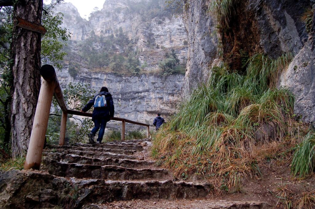 Miguel (Miguel en Ruta), Patricia (Mad About Travel), Pascual (APEHT) y yo decidimos subir hasta el último mirador del nacimiento. El punto más alto al que se puede acceder a pie. Los más aventureros podrán concertar una actividad espeleológica al interior de la cueva. Desde allí arriba, me impresionó más el muro enorme y gris que el río. Cuanto más subía, la sensación de pequeñez más se acrecentaba. ¿Qué pensará un astronauta desde el espacio?