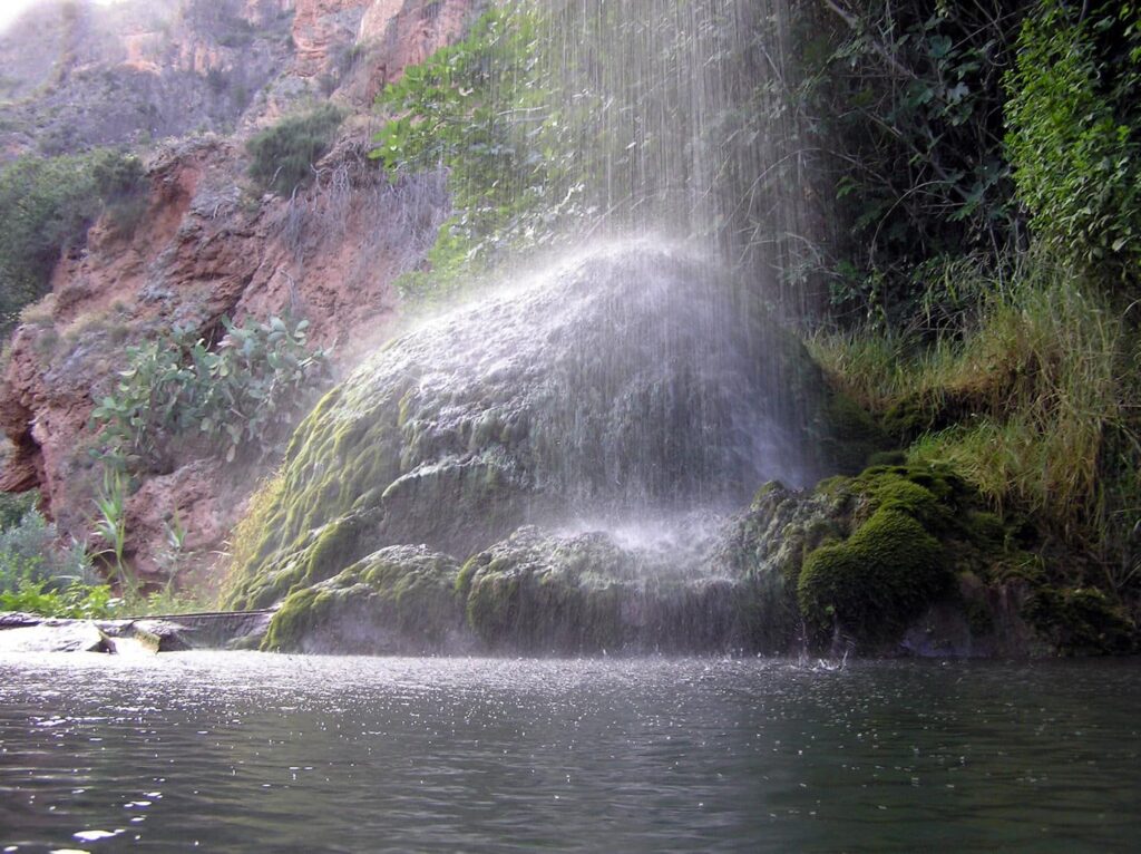 Allí me sobrecogió el paisaje. No esperaba, de ninguna manera y sin razón justificada, que Albacete mostrase ese rincón tan verdey tan asturiano. De una oquedad en el calar, un muro ovalado de piedra caliza y plantas obstinadas, surgía una pequeña cascada. «En invierno se produce el reventón», nos informaba Pascual.