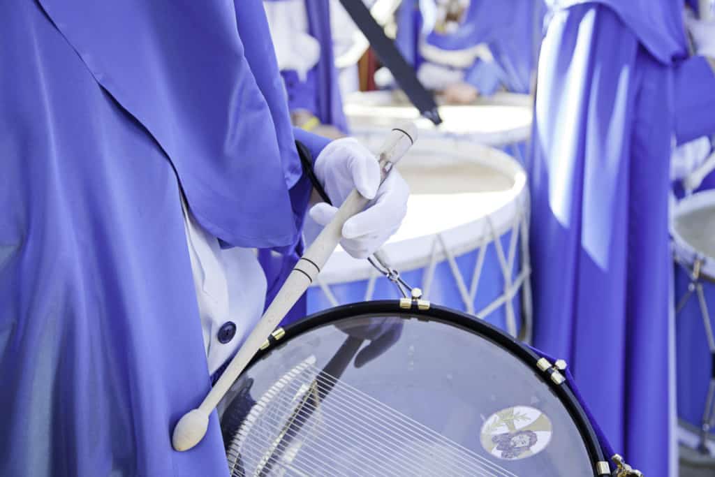 Como hemos mencionado al principio del texto, los tambores son el hilo musical que acompaña a quien visita los pueblos del Bajo Aragón. En Albalate, Alcañiz, Alcorisa, Andorra, Calanda, Híjar, La Puebla de Híjar, Samper de Calanda y Urrea de Gaén cientos de vecinos se enfundan en túnicas negras, moradas o azules, según la localidad, para hacer retumbar los tambores y los bombos. Un estruendo que parece no tener fin y que es un ritual sagrado para los vecinos.