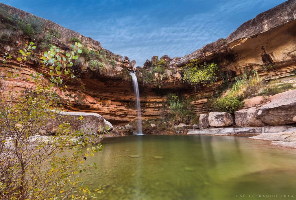En primavera es impresionante ver el agua caer con fuerza por las lluvias que han aumentado el cauce del río Tastavins. Bajo la cascada os encontraréis con una pequeña playa ideal para darse un refrescante baño en las aguas cristalinas de la poza. En verano, cuando la cantidad de agua se reduce, podréis apreciar las caprichosas formas que el tiempo y el agua están dejando en las rocas del salto.