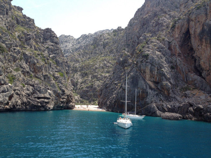 Puedes llegar en barco desde el puerto de Sóller, tras una excursión difícil o en coche. Pensarás que bien, que en coche: pues tienes una carretera conocida como «Sa Calobra». Una carretera que culebrea con curvas de 80 grados e incluso una de 360º: el famoso Nudo de la corbata. Pastillas contra el mareo y precaución.