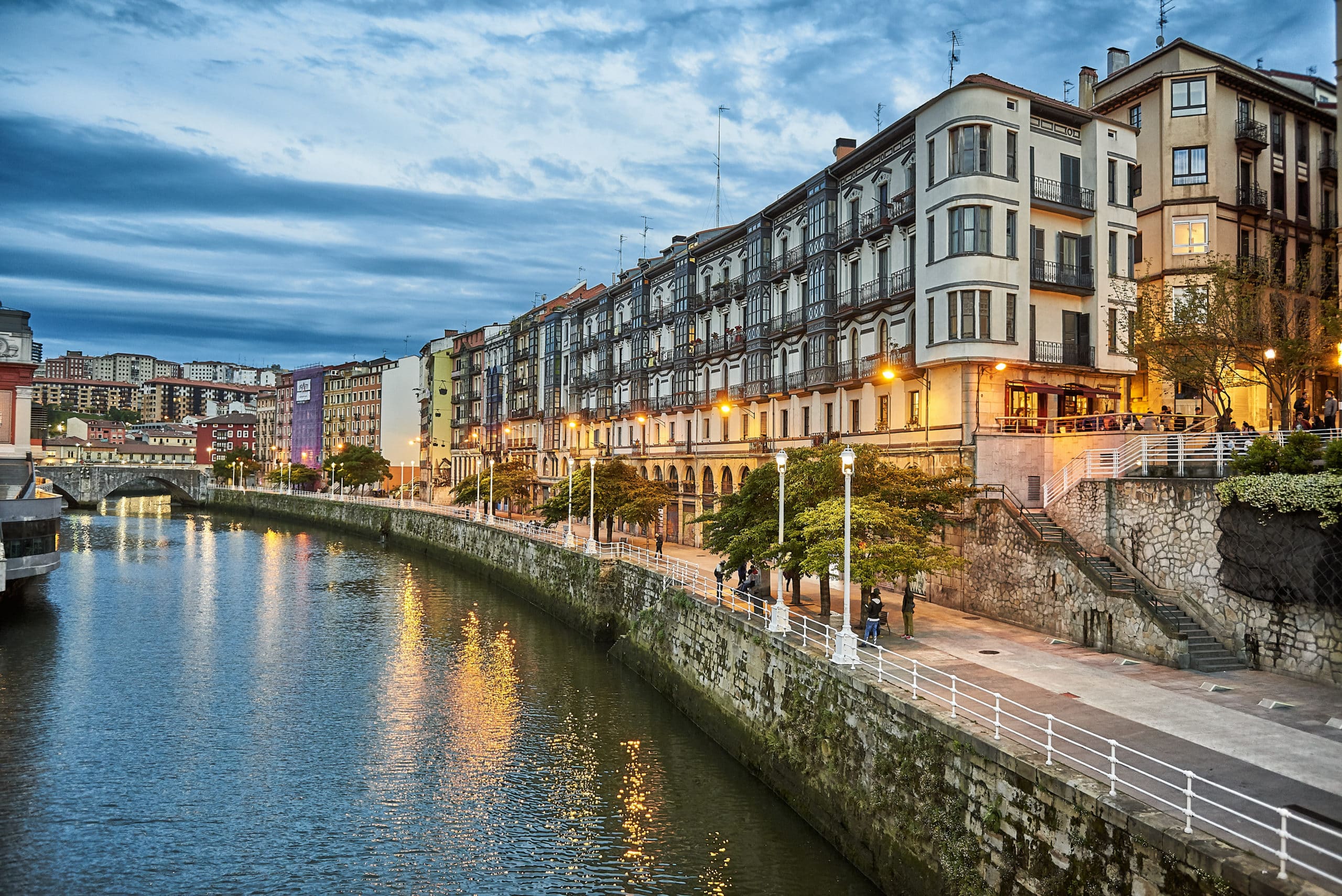 Bilbao waterfront during sunset Basque Country Spain aerial view