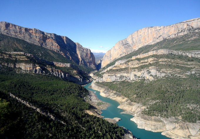 El Congost de Mont-rebei es uno de los paisajes naturales más famosos de Cataluña y una ruta de vértigo para el senderista medio. El desfiladero conecta Aragón y Cataluña siguiendo el curso del río Noguera. Además del paisaje, uno de sus atractivos son las escaleras acantiladas de Montfalcó, que trepan por el abismo.