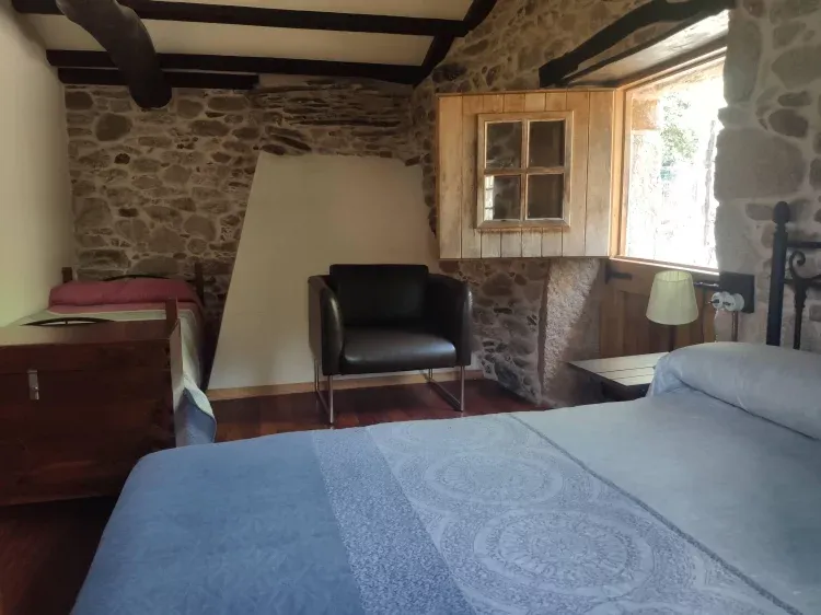 He visto casas a las que llamaban rurales, que no tenían nada de rural. Pero Casa Vilariño tiene todas las características de una. Es una casa reformada a partir de una antigua casa de aldea. Todo en madera y piedra y conservando muchas cosas de antaño (gran chimenea y horno de leña, grandes vigas...), pero a la vez sin renunciar a ninguna comodidad (calefacción, cocina completa, piscina...). Tengo que destacar el sofá comodisimo del salón. Al encontrarse en una aldea al pie del monte, el descanso está asegurado y el paisaje es una gozada. Eso sí: recomiendo consultar con los dueños la mejor ruta para acceder; nosotros no lo hicimos y el navegador nos llevó por un camino rural intransitable. Por buscar algún "pero": la casa es bastante oscura debido al pequeño tamaño de las ventanas. Sólo hay un baño, por lo que si sois muchos, tendréis que organizaros para usarlo. Por lo demás, una casa muy recomendable, y unos dueños muy atentos.