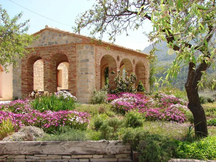 El jardín, de más de 4.000 m2, está diseñado de forma que a lo largo del año se suceden las floraciones, teniendo también una gran cantidad de plantas medicinales y aromáticas. También contamos con una fuente con nenúfares y peces. La finca alrededor de las casas tiene la zona agrícola con algarrobos, acebuches, huerta y gallinas.
