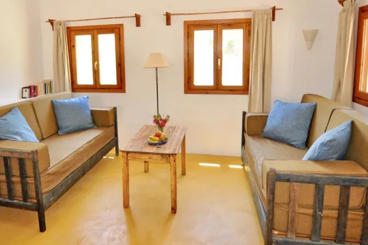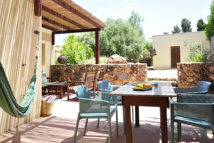 Cada casa por su tamaño, orientación, distribución y decoración tiene su propio carácter. Casa Levante, Casa Poniente y Casa Pequeña tienen dos dormitorios, Casa Sur uno. Casa Zen es un estudio con cama de matrimonio. Lo especial de ésta casa es la cocina de verano en su patio techado.