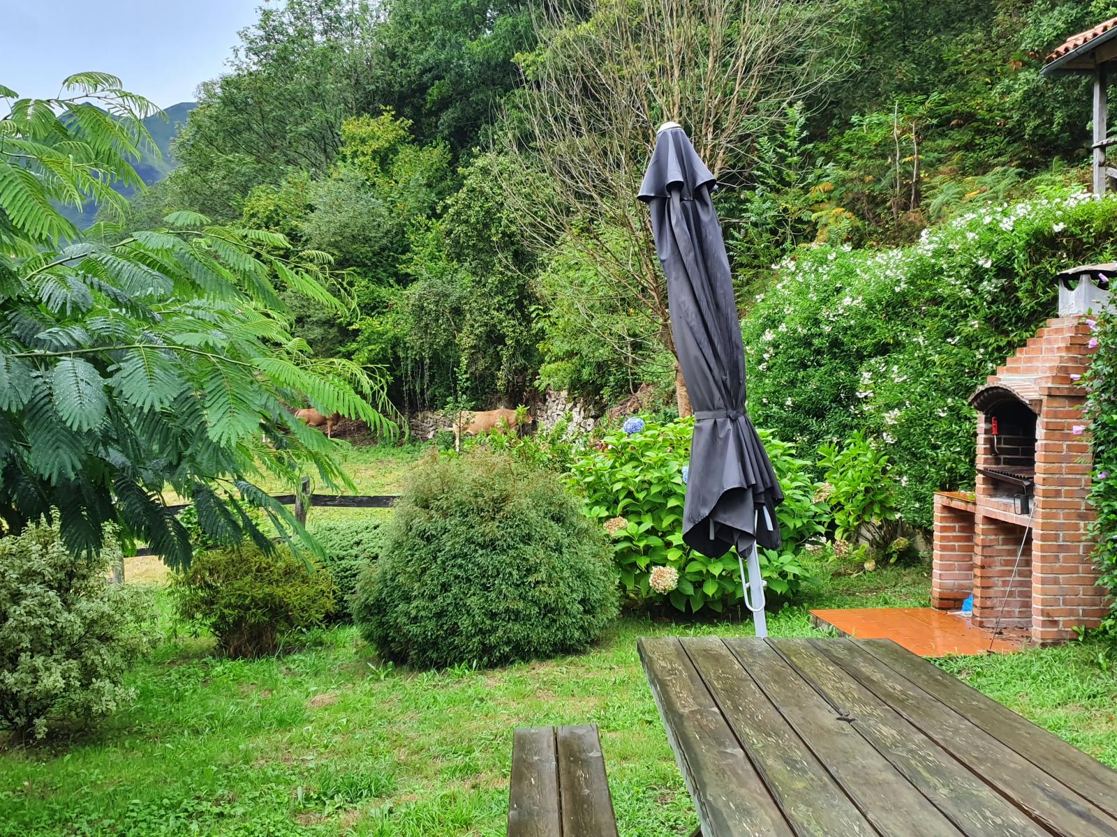 La casa está situada en un lugar muy tranquilo, afortunadamente sin cobertura para dispositivos electrónicos, y dotada de todas las instalaciones necesarias para pasar unos días. Además, tiene una barbacoa junto a la casa, con un bonito merendero de la propiedad.
