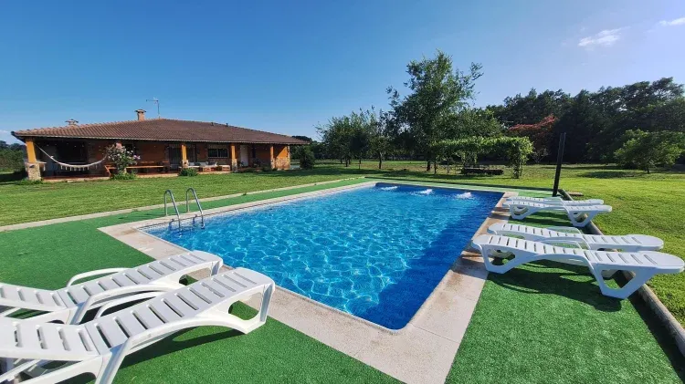 Hemos pasado unos días estupendos con nuestro grupo de amigos. La casa tiene todo lo necesario para disfrutar del descanso. Es pura privacidad, toda la finca para nosotros,es enorme,sin vecinos cerca... A destacar la climatización interior,en cada habitación se puede regular y las camas son muy cómodas. La casa es muy amplia y funcional. Hemos desayunado,comido y cenado todos dias en el porche justo en frente de la piscina que también es estupenda y amplia,la verdad es que casi no nos ha apetecido salir al pueblo. Te sientes como en casa, los propietarios estuvieron disponibles cuando los hemos necesitado. Sin duda la recomiendo, y volveremos.