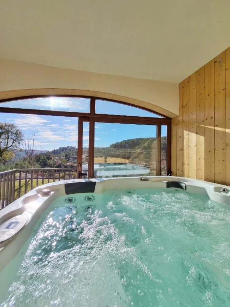 Dispone de seis habitaciones con ropa de cama y toallas, cinco baños con bidé, bañera y/o ducha, además de zona de hidromasaje.