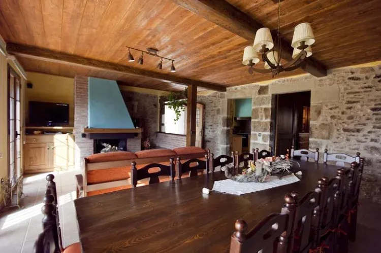 Dispone de cocina, comedor-sala de estar con chimenea, dos habitaciones de matrimonio, una habitación doble, dos habitaciones triples, baño por habitación, porche con barbacoa, ping-pong y futbolín, juegos de mesa, DVD. Capacidad: 12 plazas.