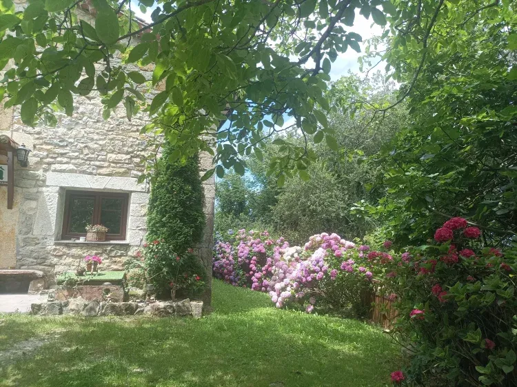 La zona exterior tiene barbacoa, mesas rústicas para comer todos juntos, una pequeña zona de juego infantil y muchas flores en la época estival para que le den al ambiente un aroma dulce.