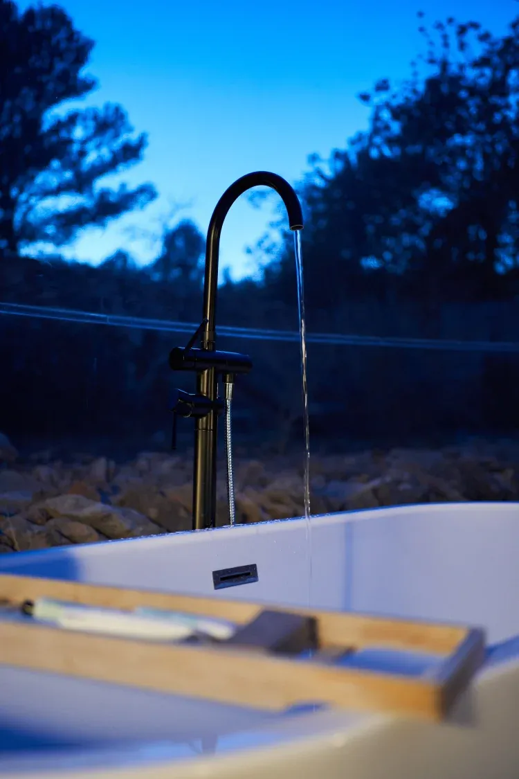 Climatizada y equipada con filtro HEPA —eficaz en la purificación del aire frente a virus y bacterias—, ofrece un ambiente saludable y acogedor todo el año. Disfruta de una ducha interior y relájate en su bañera de hidromasaje exterior bajo el cielo estrellado.