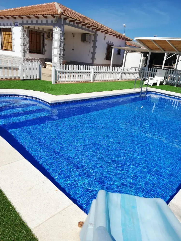 Hemos estado alojados 1 semana 10 personas y hemos estado genial. Es un sitio tranquilo al lado del pueblo que tiene de todo. La barra de bar de la calle junto con el cañero y la cámara frigorífica para los mayores nos vino muy bien, igual que el jacuzzi para relajarnos y el porche con los ventiladores. Nosotros hicimos la vida en el exterior. Todas las habitaciones tienen aire acondicionado y se agradeció para poder dormir con la ola de calor. Maria Luisa muy amable con todo lo que le pregunté, y se agradeció el detalle del pan y las magdalenas cuando llegamos. Todo genial!!