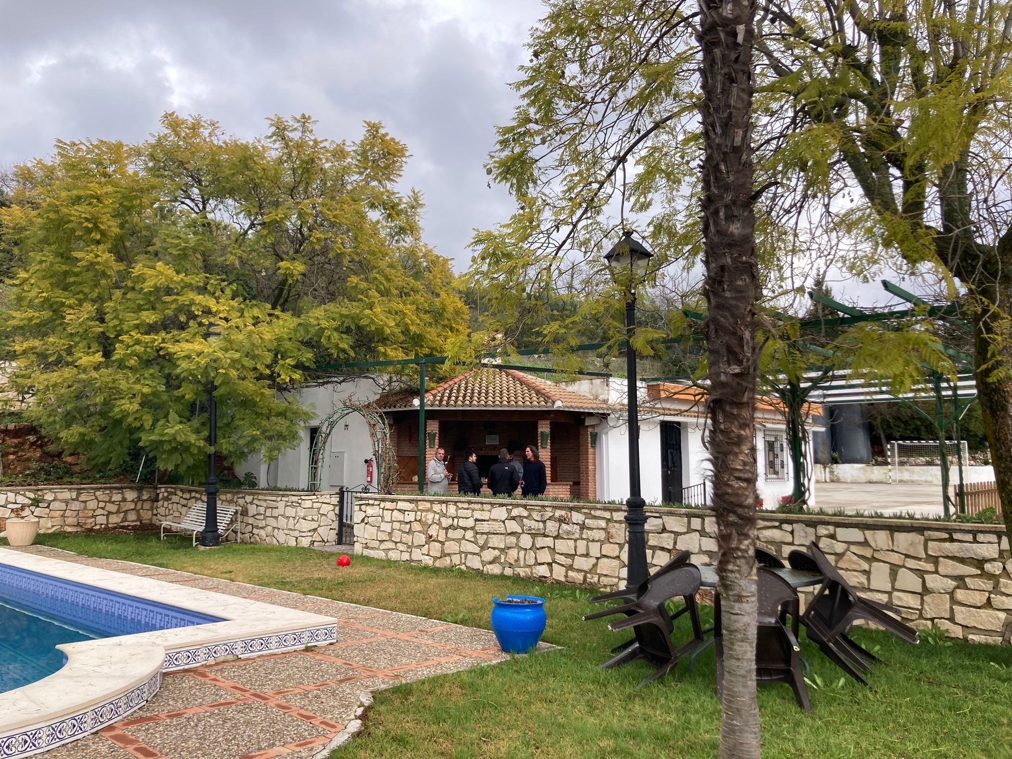 Tuvimos mala suerte por el tiempo que nos hizo en el fin de semana de mediados de noviembre, pero eso no importa en Casa Jacaranda. Tiene sitio de sobra, rincones especiales en cada espacio, está preparada para un montón de gente y todo funciona a la perfección. El salón de la chimenea, la barra y el billar ha sido nuestro centro de reunión para soportar la lluvia y ha sido todo lo que necesitábamos.