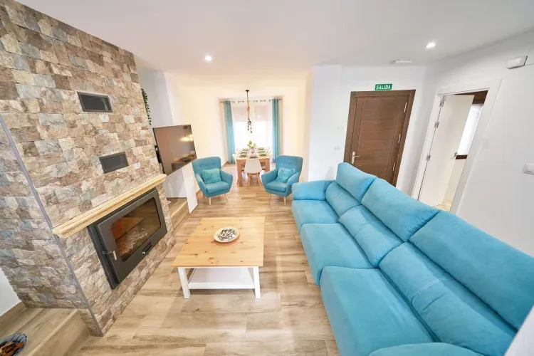 - Planta baja: cocina-salón con chimenea, zona de estar y baño