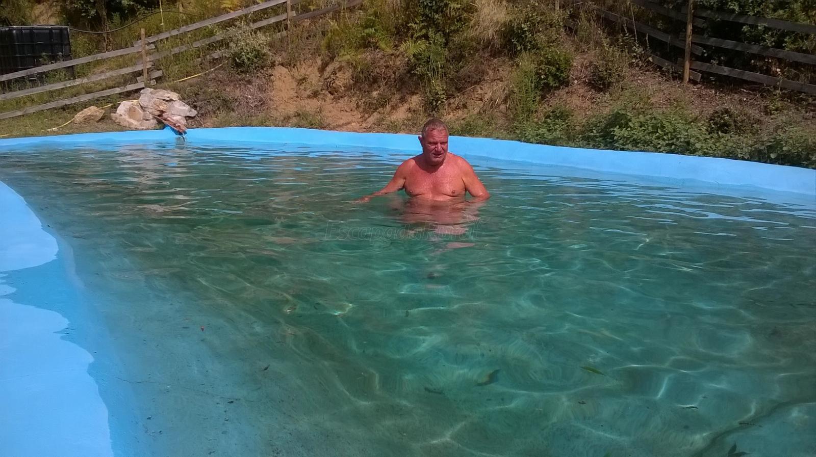 La piscina no se encuentra a unos 120m de la casa, en plena montaña. No cabe duda de que el entorno es salvaje, y esto es también algo que todo el mundo valora muy positivamente; pero, claro está, para quien no está familiarizado con los trabajos de montaña, resulta muy difícil darse cuenta del esfuerzo que supone mantener un prado limpio de maleza y entender que, a pesar de todo, éste nunca estará como si fuera hierba artificial (pero eso sí, uno se encuentra rodeado de unas vistas incomparables).