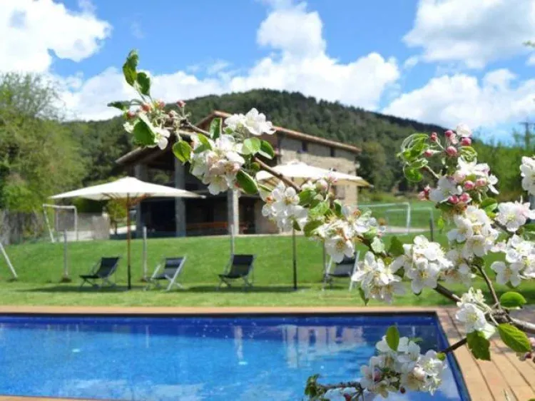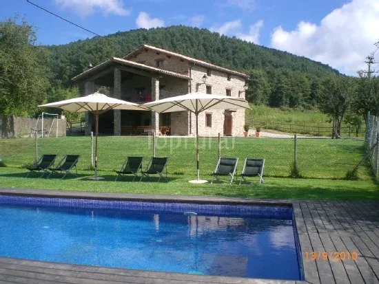 Esta masía catalana se alquila completa con todo lo necesario para unos días de turismo rural. Dispone de 5 habitaciones de matrimonio, 3 supletorias y una habitación de 7 plazas. Cada habitación dispone de baño propio. La casa dispone de salón con televisor de plasma, chimenea. Disponemos de un altillo con billar y futbolín .El exterior de la casa és fantástico con un gran porche con barbacoa ,mobiliario de jardín, piscina y espacio exterior para jugar con los niños que harán de su estancia una gran experiéncia.