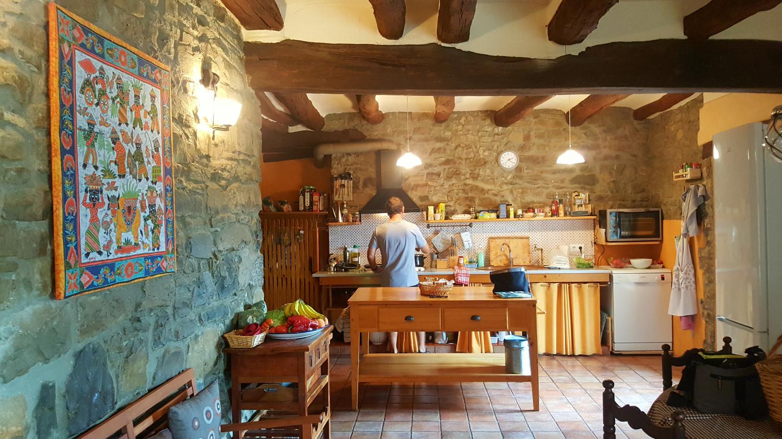 Una cuina tan genial, gran i acollidora, que tots –cansats de divendres després d'una setmana de feina i de les hores que alguns vam ensopegar a la carretera– hem estat sopant mentre es feien les pizzes la primera nit, sense ni moure'ns al menjador i seure a les cadires: 12 persones allà en peu, passant-s'ho bé mentre menjàvem tros a tros cada pizza que sortia del forn.