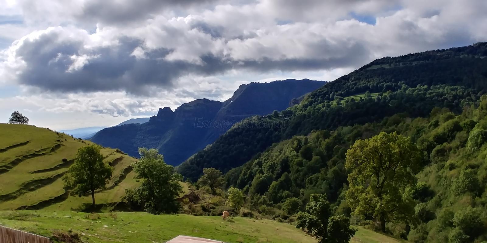 A fantastic view down the valley. Peaceful and calm. The gentle sound of cow bells. Good walks. It was perfect for our family reunion. The farm house is clean and tidy and the patio has a gorgeous view. We all loved this place! Marta was very friendly and helpful. Olot is a nice town.