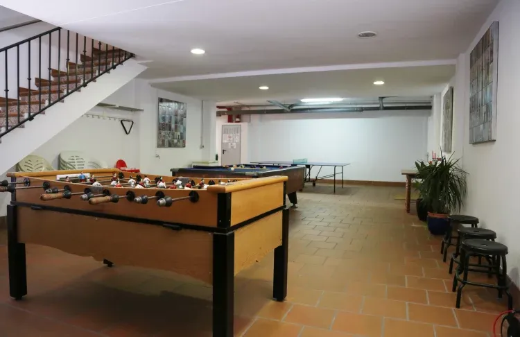 Las tres casas comparten una zona de juegos con dos billares, dos futbolines, mesa de pin, además para grupos grandes ofrecemos un gran salón con cocina industrial, zona de comedor para al menos 25 personas y zona de estar con estufa de pellets, sólo disponible si se reservan dos casas o las tres.