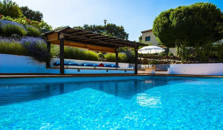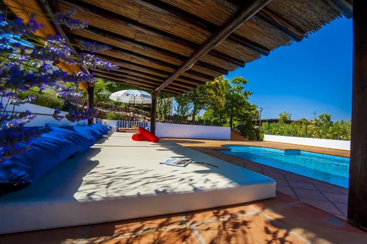 Piscina exterior con magníficas vistas, rodeada de jardines y fuentes, espacio de sombra (Chill Out) con colchones y microclima, equipo de sonido (iPhone, entrada mini jack). La zona chillout posee su propio sistema microclima, para una estancia más fresca.