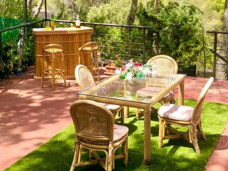 Cuenta con espacio para jugar al Badminton y baloncesto, un entrañable patio andaluz y diversas terrazas repartidas por todo el jardín con barbacoas.