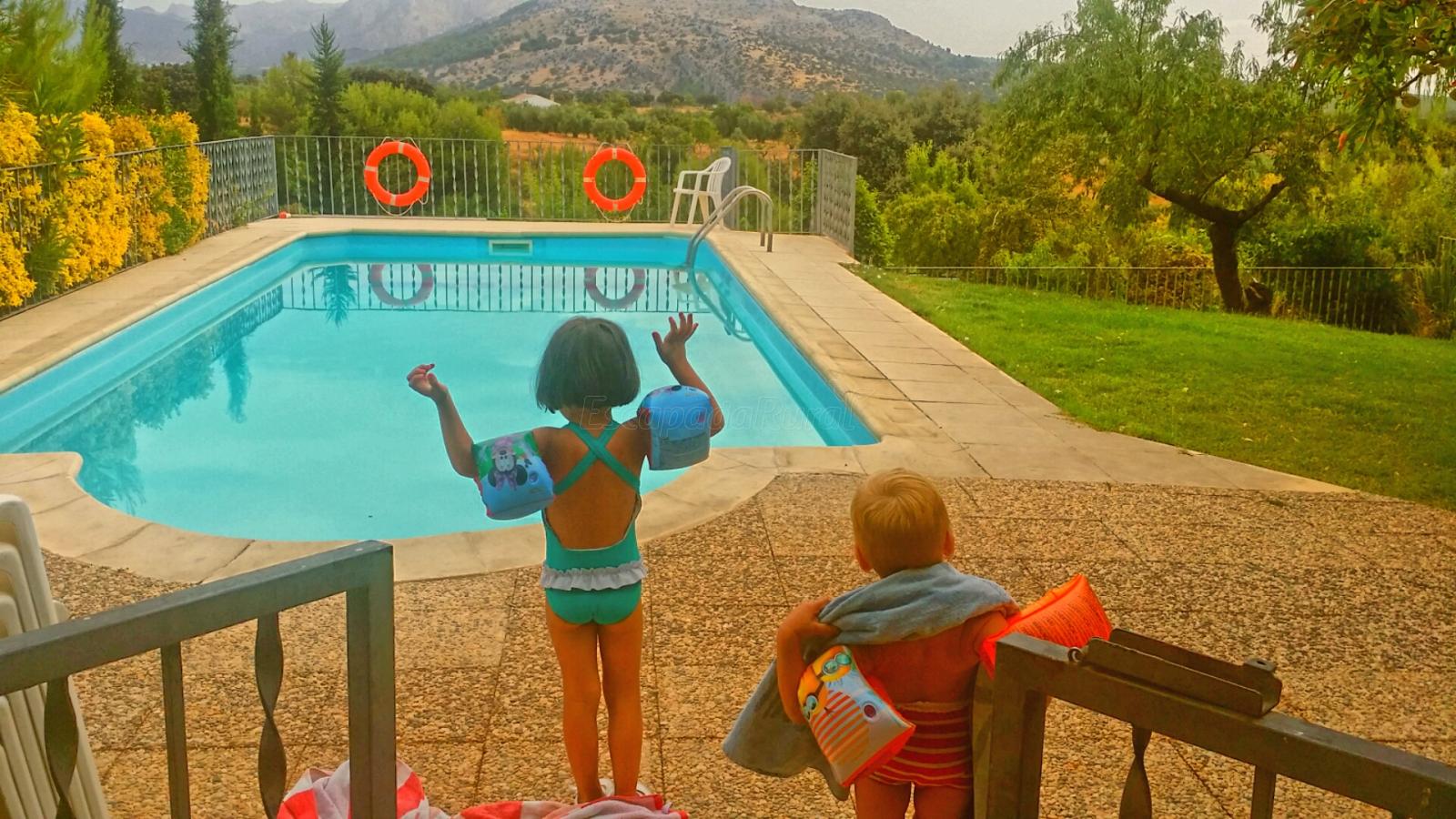 Somos una familia de dos adultos y dos niños pequeños de 2 y 3 años. La cabaña está perfectamente equipada para que no nos falte nada. Incluso nos pusieron una barrera para la cama del pequeño. Las camas muy cómodas. Todo limpio. El jardín espectacular. Los arboles frutales maravillosos. Nos pusimos las botas con las almendras. Las vistas al valle maravillosas. La piscina muy agradable. Un montón de cosas que hacer en la zona: pueblos muy bonitos, piscinas naturales... Sin hablar de la gastronomía de la zona para chuparse los dedos.