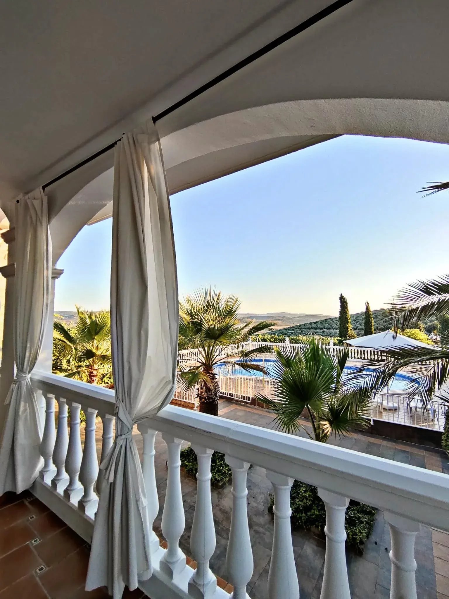 La casa está muy bien ,lo que es la vivienda está toda en la primera planta ,junto con una terraza y otro dormitorio y baño que están en la buhardilla,abajo está la piscina ,la barbacoa y zonas para comer o cenar al aire libre,todo está muy bien cuidado,todas las habitaciones cuentan con aire acondicionado y ventilador de techo,el acceso a la casa es bastante sencillo y el pueblo está al lado por si necesitas algo,los dueños muy atentos a cualquier problema que surja están ahí.