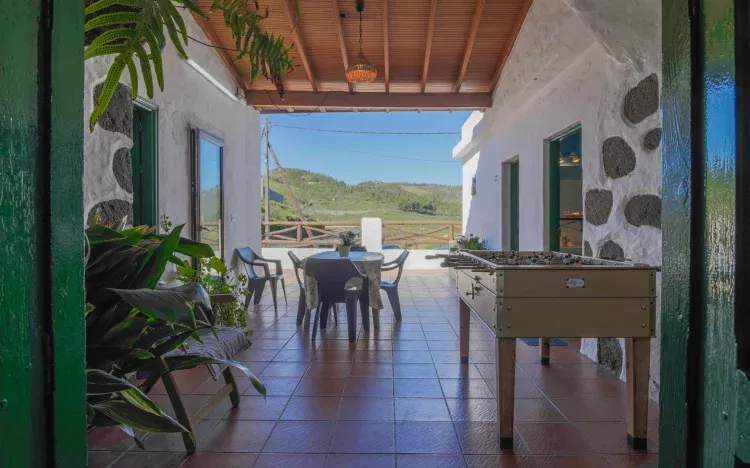 Consta de dos terrazas, una en la parte posterior de la casa con piscina privada, tumbonas, sombrilla, ducha exterior y aseo. La otra terraza está a la entrada de la casa, muy amplia y con barbacoa, fregadero, mesa y sillas de exterior y futbolín.