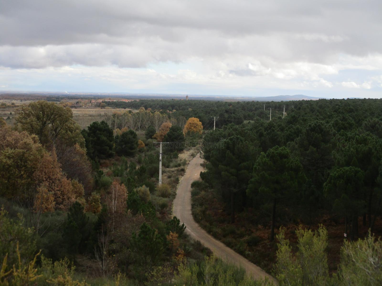 El pueblo muy tranquilo y con muchos caminos en los pinares, nuestro peludo lo paso genial en la Naturaleza y la presa perfecta para darse un chapuzón.