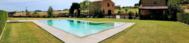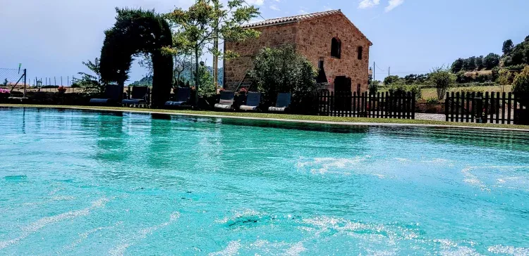 Masía típica catalana situada entre campos de cereal y magníficas vistas al Pirineo. Dispone de una piscina de sal de mar con chorros de hidromasaje, una amplia zona de jardín con barbacoa y porche para veladas tranquilas.
