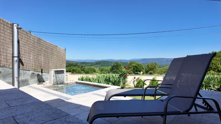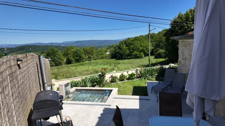 Tiene dos baños, cocina equipada, calefacción, chimenea...