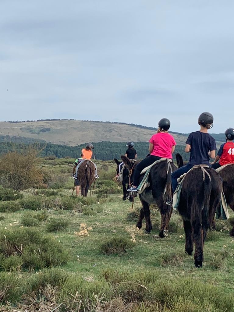 Hicimos una preciosa ruta con sus burritos, unos montados y otros a pie, en la cual aprendimos cosas sobre la flora y la fauna de la zona, e incluso pudimos observar de cerca buitres negros y buitres leonados.
