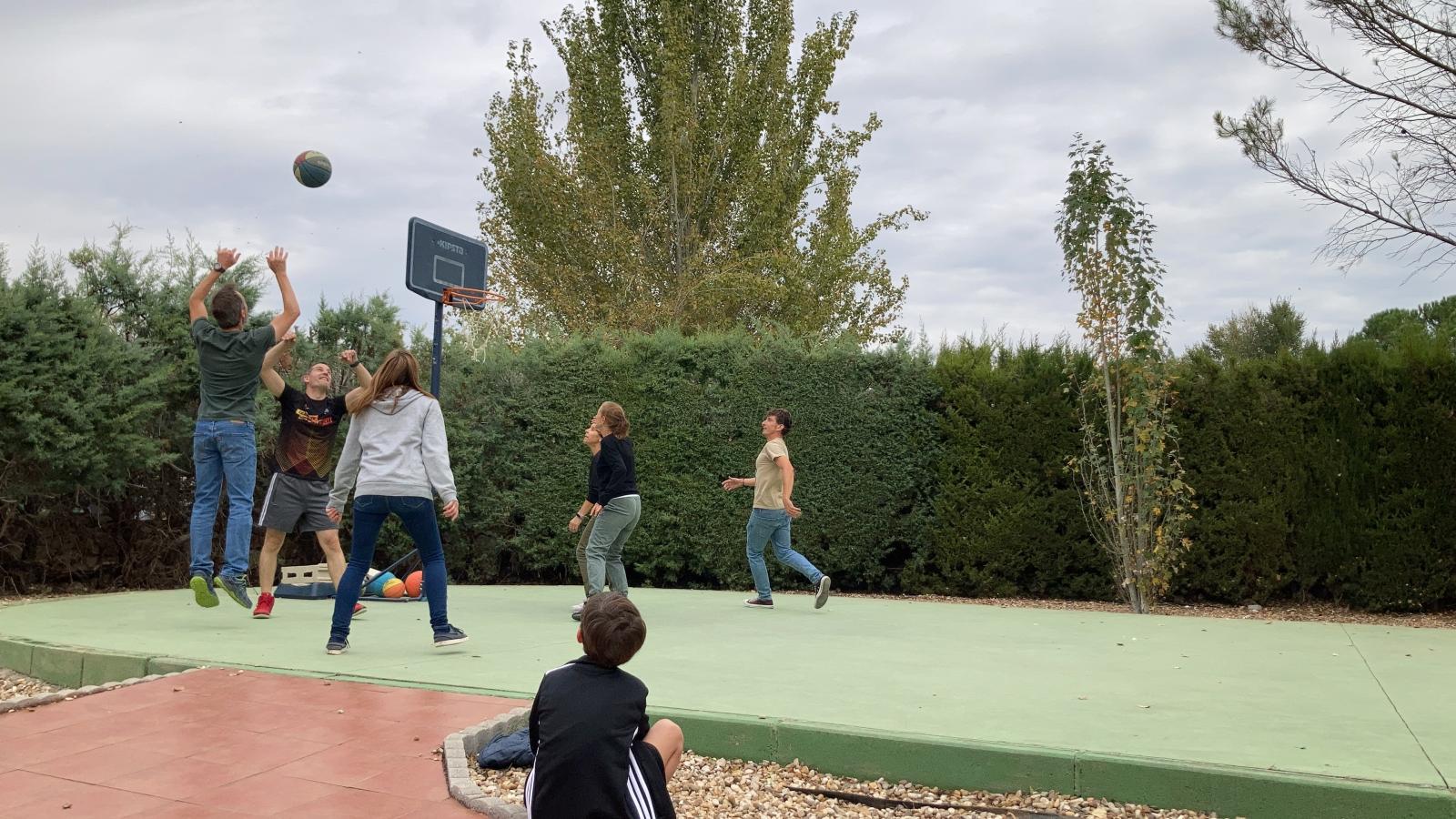 Al día siguiente salió el sol y comprobamos que en el exterior es genial para niños y adultos: fútbol, ping pong, baloncesto... también ideal para disfrutar de los aperitivos y comidas en la zona de la barbacoa. Por cierto una barbacoa profesional que nos encantó. Hasta nos dejaron la leña!