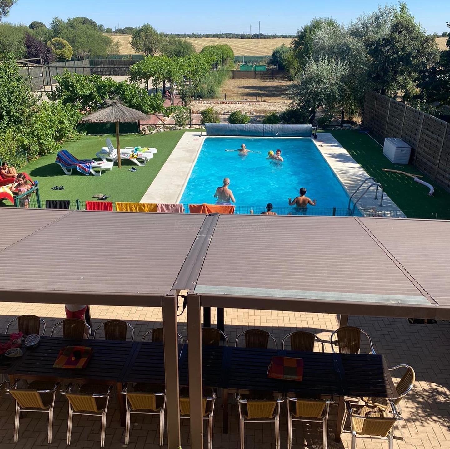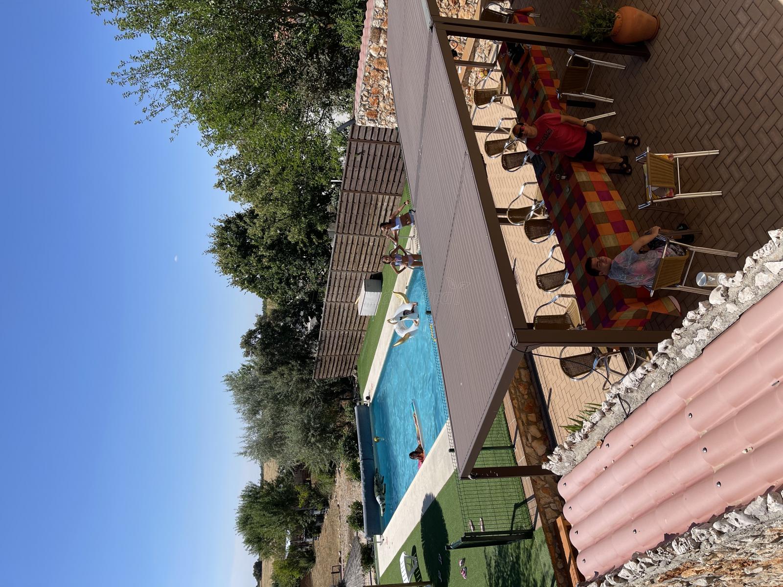 La casa tiene todas las facilidades posibles: la zona de la piscina es genial, hay una pequeña pista de fútbol y otra de baloncesto, zona de barbacoa con sombra y mesa enorme para todos, espacio para aparcar todos los coches dentro del recinto (nosotros llevábamos 5 coches).