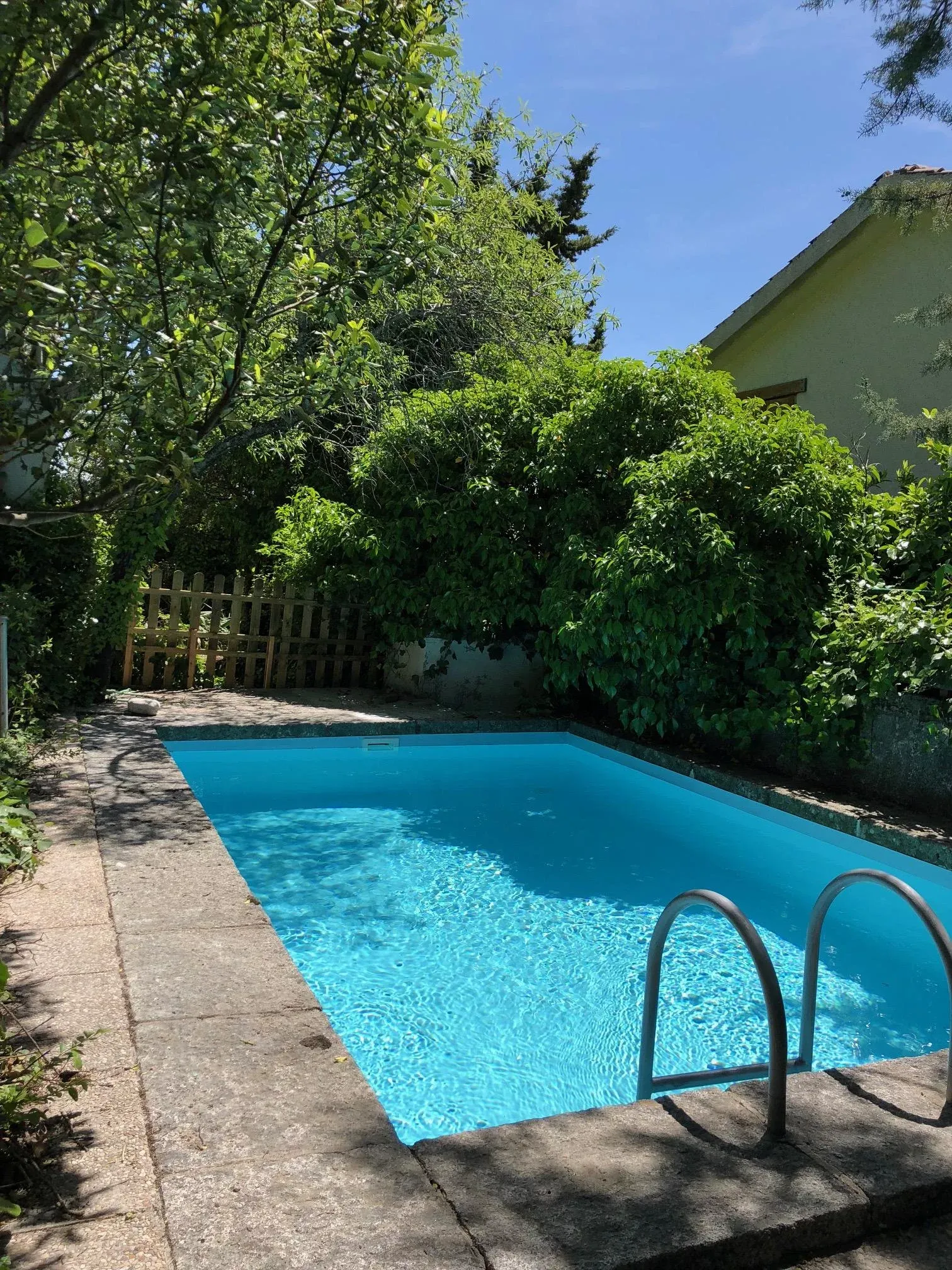 Piscina independiente en entorno rústico.