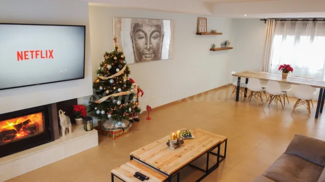 Estupendo chalet como nuevo, estancias muy limpias y muy completo. En realidad es mayor de lo que se ve en las fotos. Nos ha encantado, salón enorme con chimenea y TV espectacular. Cocina muy amplia con menaje completo y un frigo muy grande. Habitaciones espaciosas con baño propio y aire acondicionado en todas ellas. No le falta ningún detalle y adornada con buen gusto. La anfitriona excelente, se preocupa de que no te falte nada, muy amable y atenta. Nos indicó muchos lugares y restaurantes donde poder comer y ver los pueblos y rincones más bonitos de la zona. Muchas gracias por todo Sonia.