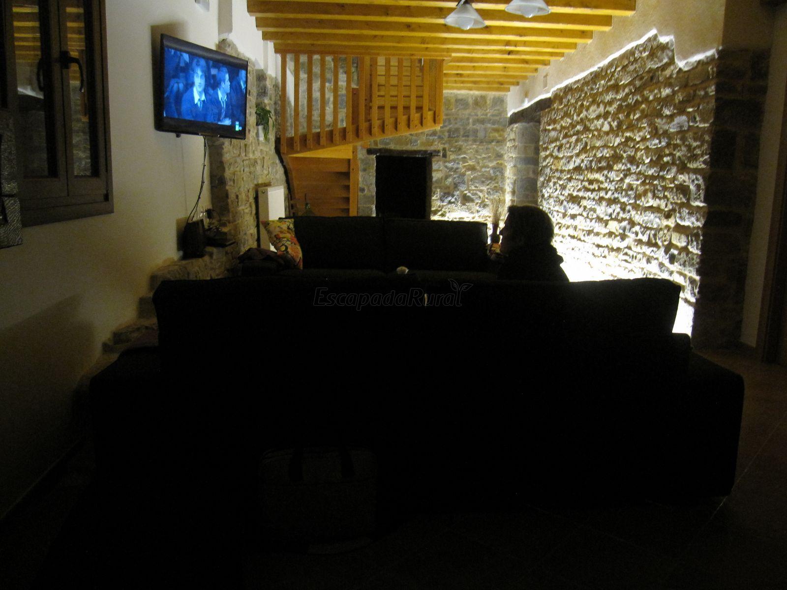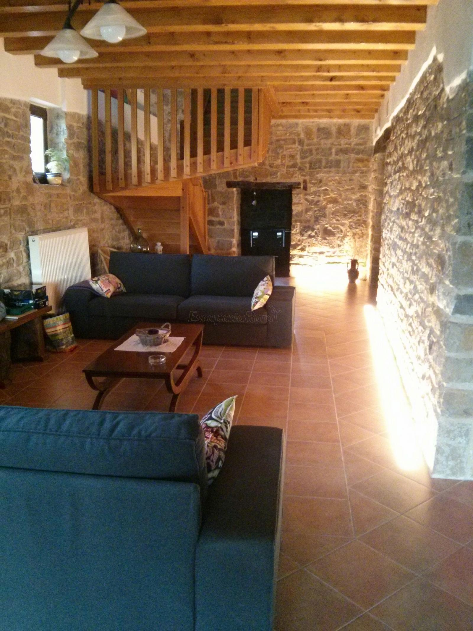 El salon con chimea grande y tiene una enorme cristalera que da a un valle ,es expectacular ya que puedes estar 20 0 25 personas sin apreturas.