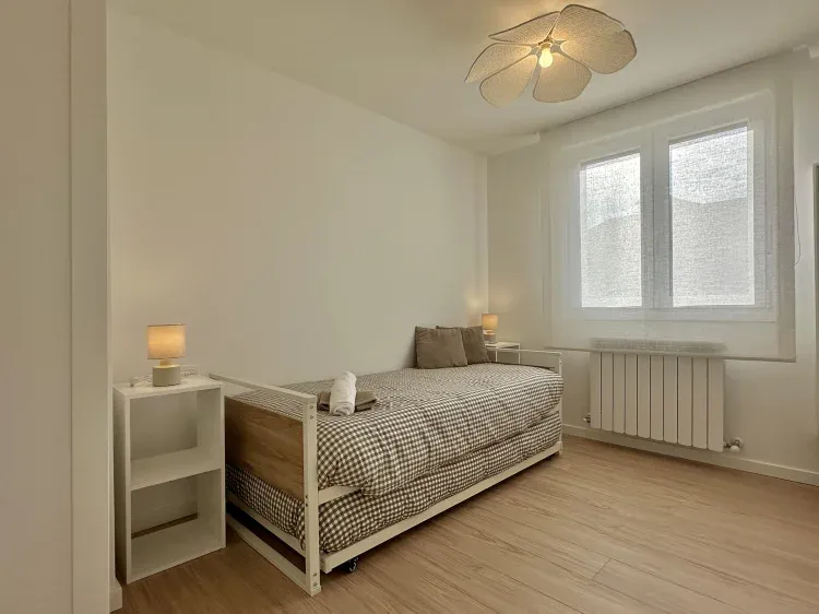 Está habitación tiene una cama de matrimonio y un sofá cama de 1,35m. Finalmente en la casa hay otras dos habitaciones con dos camas de 90cm cada una y otro baño completo.