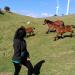 Toñi , viendo los caballos salvajes y Hanna al fondo.