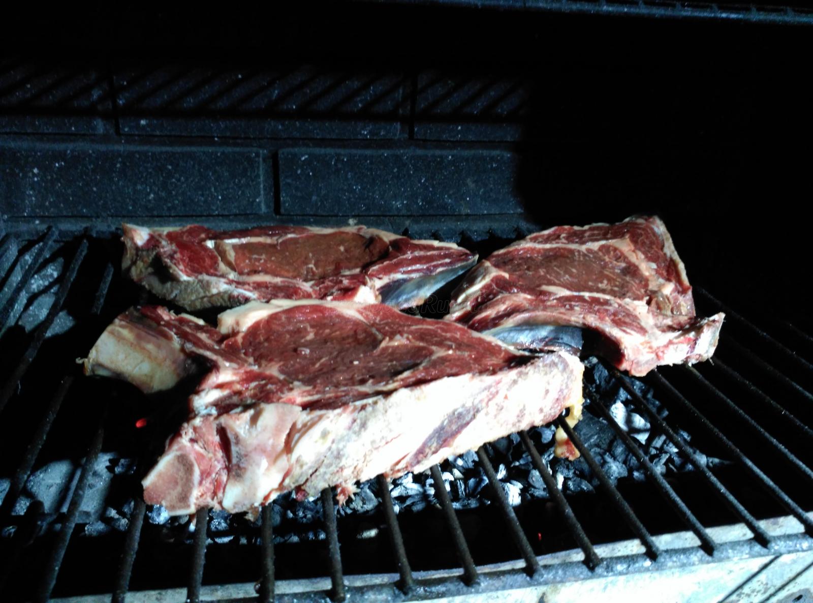 Haciendo unas chuletas de vaca vieja, carnicería Urkiola.