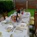 La mesa montada para comer, la paella.