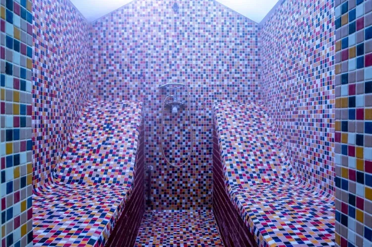 Spa privado con piscina climatizada, jacuzzi, cascada, chorros, baño turco y duchas de bienestar.
