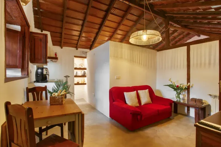 Casa Abona ha sido restaurada a principios de este año 2024, cuenta con un dormitorio independiente, ducha y baño privado, salon comedor con televisión, cocina abierta e internet gratuito. También ofrecemos servicios como internet y netflix de manera gratuita para nuestros clientes. Casa La Paredita cuenta con 5 casas completamente independientes (Casa Taoro, Casa Güimar, Casa Ycoden Daute, Casa Abona y Casa Acentejo) que comparten un hermoso jardín canario y rincones únicos para relajarse. Se encuentra en un espacio natural protegido, es la única vivienda en la zona. A tan solo 100 metros se encuentra el mirador Lomo Molino La zona comercial de El Tanque se encuentra a 200 metros, hay todo tipo de comercios y servicios. Muy recomendable la pizzería La Albahaca, abre de viernes a Domingo La Paredita también conocida como el granero es una antigua casa canaria que se ubica en el paraje que le otorga su nombre. Esta ubicada en el municipio de “El tanque” dicho nombre tiene más de 400 años de antiguedad cuando la parte alta de Garachico donde está ubicado, utilizada estas tierras como cultivo y donde además construyeron un estanque, para abastecer de agua al municipio. No fue hasta 1641 cuando se declaro municipio independiente y se constituyo su primera alcadía. “La paredita”, queda al borde de un gran desnivel, casi acantilado, y que desde su situación se encuentra abrazando al municipio “El Tanque” y enmarcando la majestuosidad del “Teide” que se puede observar desde cualquier punto de la propiedad. Una hermosa y única visión que es un privilegio otorgado por tan increíble localización. Debido a la elevación del terreno en el que se ubica podemos observar una especie de valle desde sus jardines. Al fondo nos encontramos con el municipio “El Tanque” para a partir de ahí perdernos en la inmensidad del pinar que recubre las faldas del Teide y seguidamente observamos la cumbre y el pico viejo: El punto más alto de España. Esta antigua casa contaba con un aljibe, muy comúnmente utilizado cuando no había agua corriente, un pajar, reformados techos de teja que respetan la arquitectura tradicional canaria, así como suelos de madera en la mayoría de las estancias. No tenemos constancia exacta de cuando se construyó, pero la antiguedad de los muros principales hacen sospechar que el primer asentamiento tuvo lugar alrededor de 1840. Se encuentra en un espacio natural protegido, es la única vivienda en la zona. A tan solo 100 metros se encuentra el mirador Lomo Molino. La zona comercial de El Tanque se encuentra a 200 metros de distancia, donde hay todo tipo de tiendas y servicios. Muy recomendable es la pizzería "La Albahaca", que está abierta de viernes a domingo. También recomendamos el restaurante 'El Mortero' ubicado en el mirador de Lomo Molino, que ofrece impresionantes vistas junto con una selección culinaria que realza la cocina tradicional canaria con un toque moderno. Estamos situados en una zona natural protegida, siendo la única vivienda en la zona. A solo 100 metros de distancia, encontrarás el mirador de Lomo Molino.