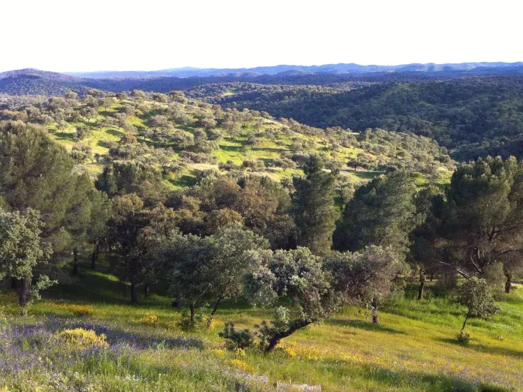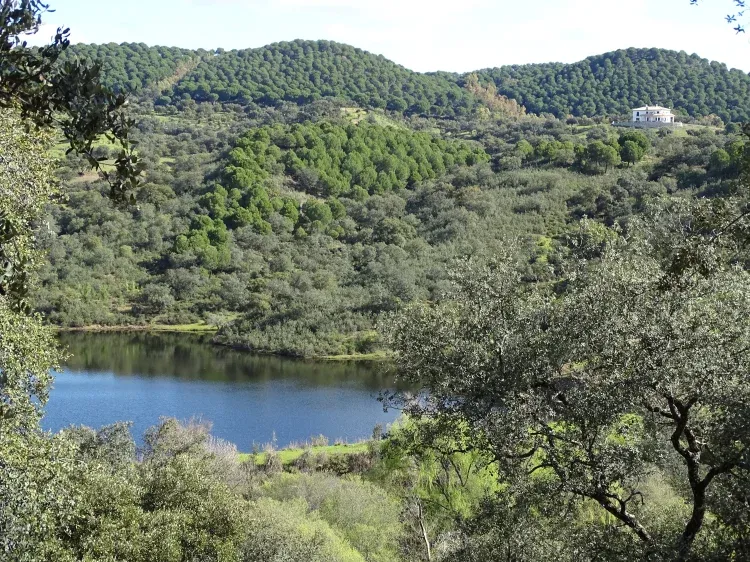 • Su vegetación se adapta al clima mediterráneo de veranos secos y calurosos e inviernos suaves, siendo la encina y el alcornoque las especies más características que conforman el atractivo paisaje de dehesa.