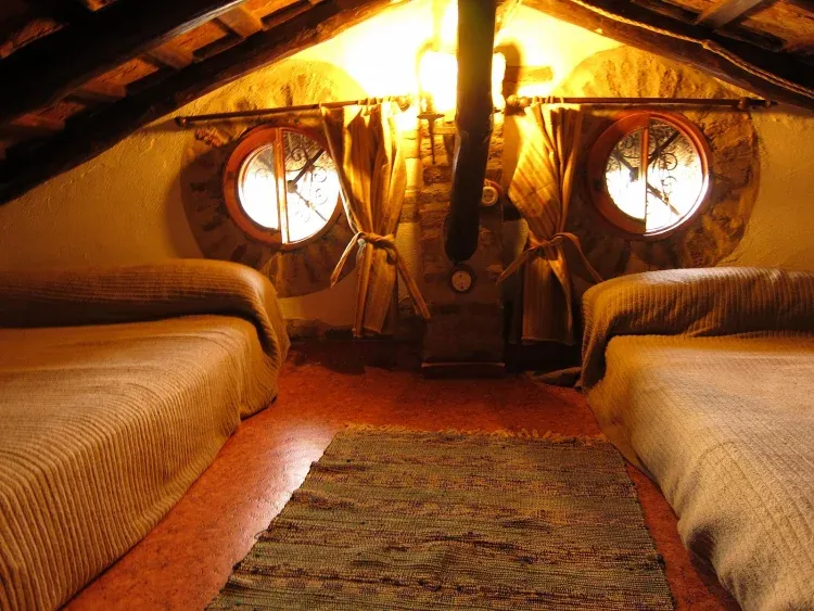 Cuenta con siete habitaciones (cuatro de matrimonio y tres individuales). Todas las habitaciones tienen baño propio, aire acondicionado y bomba de calor. Cada una de ellas está dedicada a uno de los oficios ancestrales de la Sierra (agricultura, ganadería, carpintería, arrieros, esparto y mimbre y cazador), con lo que en tu estancia te trasladarás la historia de esta parte de Sevilla, pero con todas las comodidades del siglo XXI.