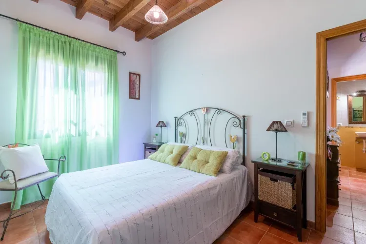 La planta baja de la vivienda también cuenta con un dormitorio con cama de matrimonio, armario abierto y equipo de aire acondicionado frio/calor. Además, un pequeño baño con ducha.