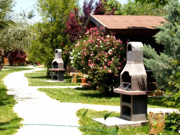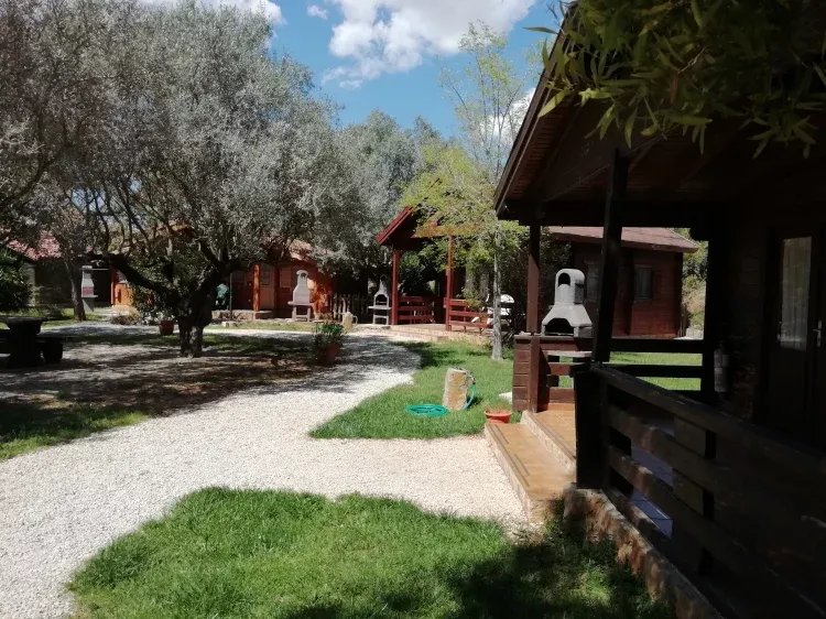9 Confortables y equipadas cabañas de madera de 2 a 6 personas. Mas de 3500 m2 de un precioso y cuidado jardín con olivos centenarios harán que su estancia en nuestro alojamiento sea un autentico placer.
