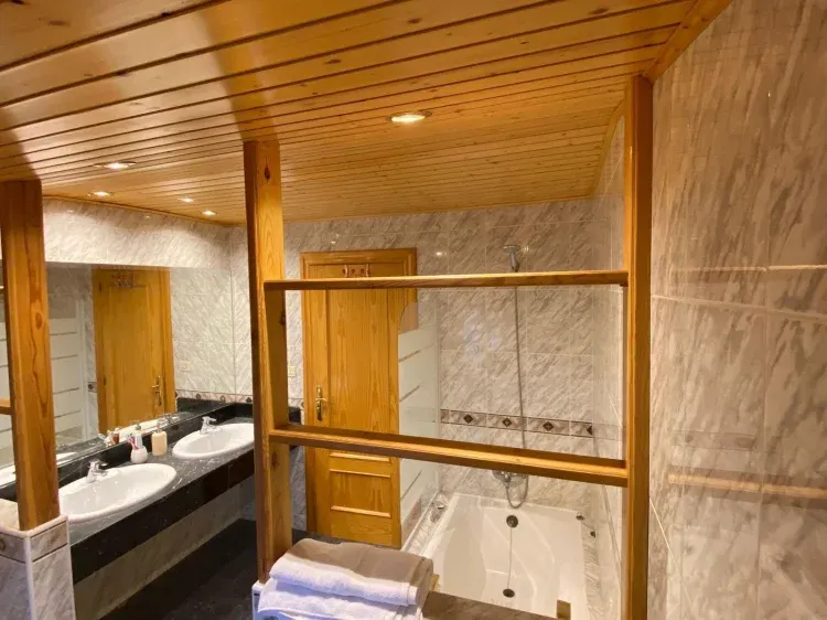 La vivienda se divide en dos plantas, teniendo en la planta de abajo 1 baño completo y 2 dormitorios dobles, teniendo la opción de rentar únicamente dicha planta. En la segunda planta se dispone de otro baño completo con bañera, 4 dormitorios dobles y zona de lavado.